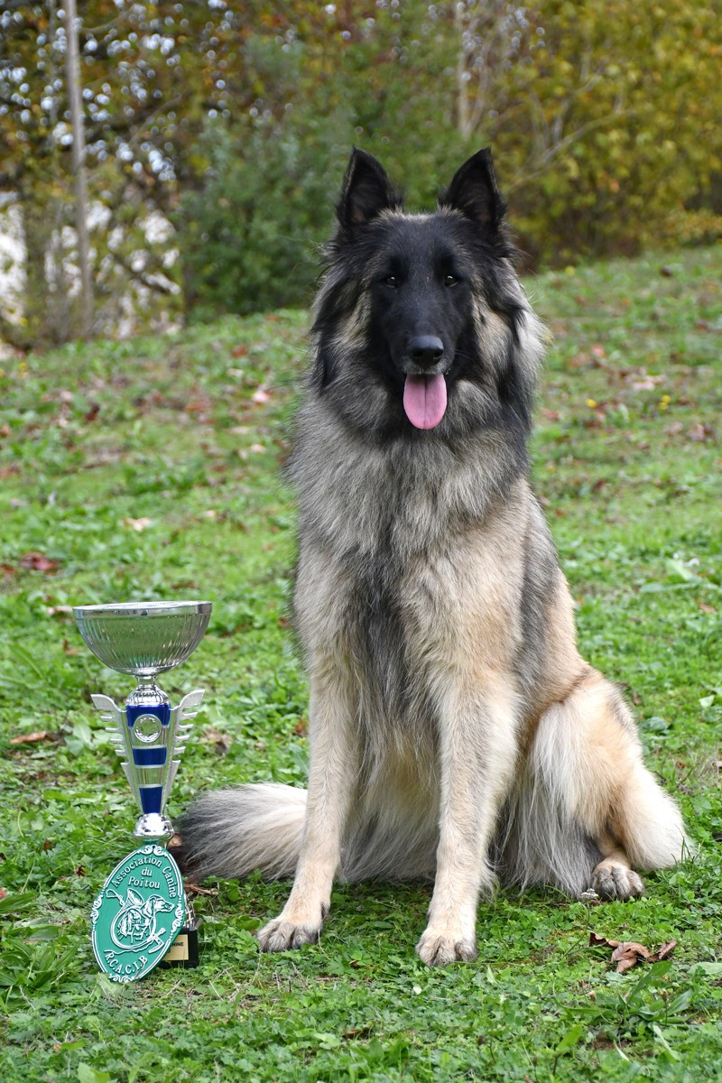 18 mois. Très bon type féminin. Bonne couleur. Jolie tete feminine. Oreille très bien portées. Très bonne ligne, oeil foncé. DCC. Très bon dessus bien soutenu. Très bonne poitrine de jeune. Très bon aplombs Allures bien bergère Excellent caractère